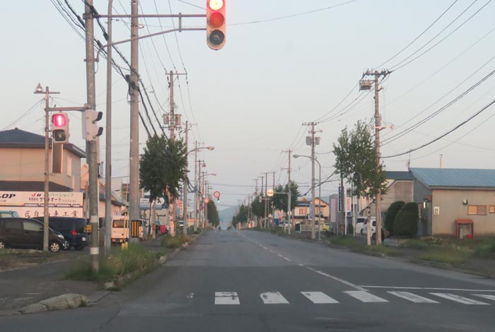 午前4時00分、南岸通り、野付牛自動車学校前から無加川町方向