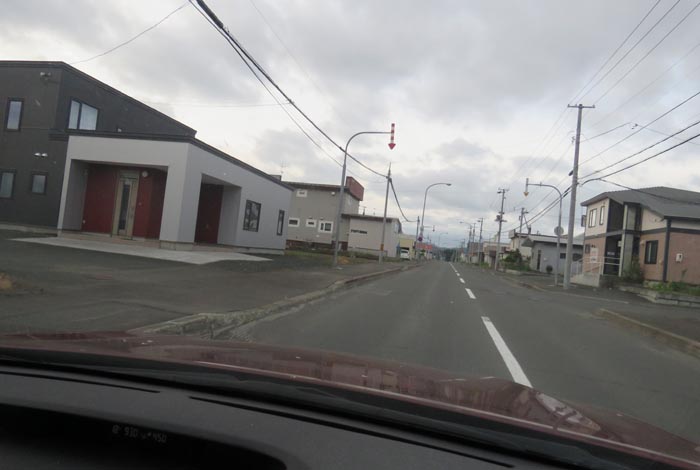 産岸通りから左折して西5号線のバス停前から北光通り交差点方向