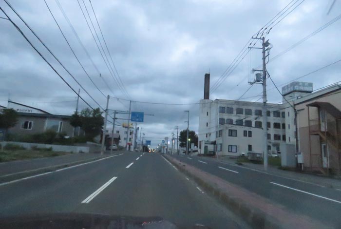 末広町の南岸通り、西4号線バス停前から野付牛自動車学校方向