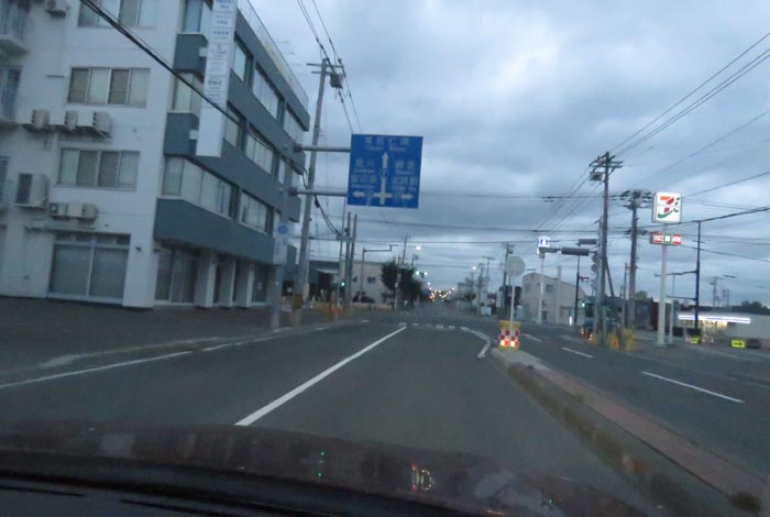 南岸通り、野付牛自動車学校前、前方はとん田通りの交差点