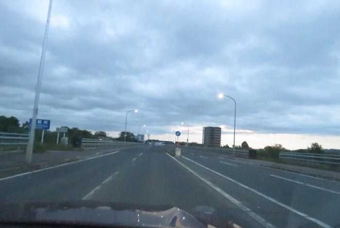 午前3時50分、西5号線、前方は南岸通りの交差点