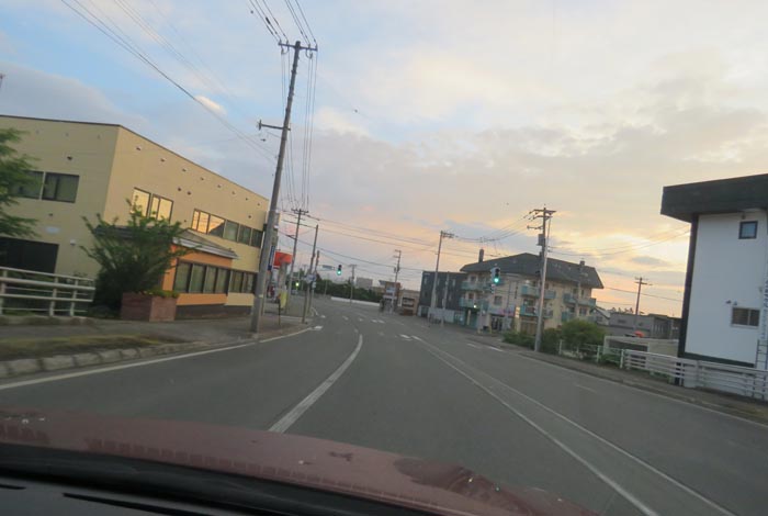 南岸通り、野付牛自動車学校前、前方はとん田通りの交差点