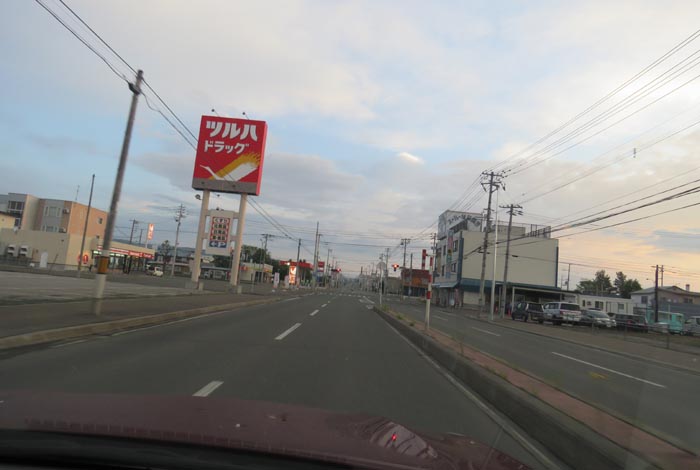 末広町の南岸通り、西4号線バス停前から野付牛自動車学校方向