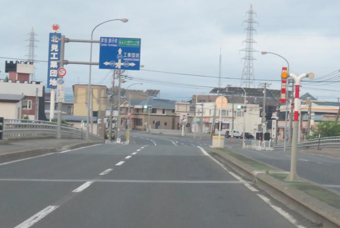 とん田通り、無加川橋を渡り錦町の南岸通り交差点