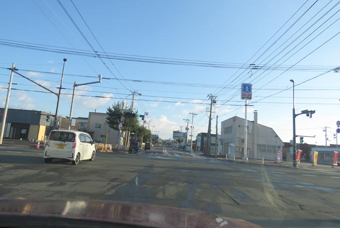 南岸通り、野付牛自動車学校前、前方はとん田通りの交差点