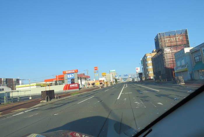 午前5時00分、4条通りの国道39号交差点を右折で緑園通り方向
