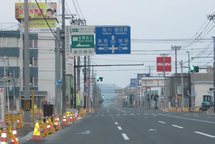 国道39号、北見トヨペット前からとん田通り交差点方向