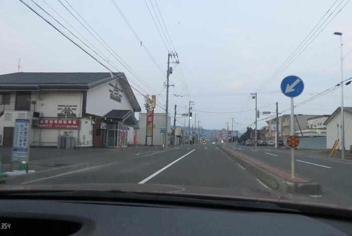 とん田通り、無加川橋を渡り錦町の南岸通り交差点