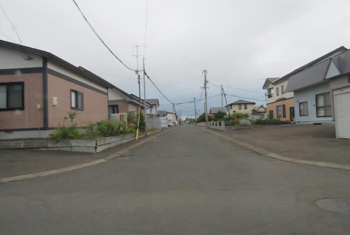 産岸通りから左折して西5号線のバス停前から北光通り交差点方向