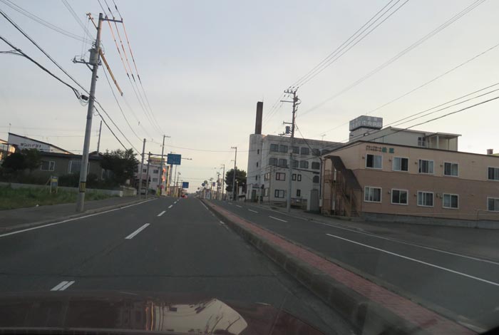末広町の南岸通り、西4号線バス停前から野付牛自動車学校方向