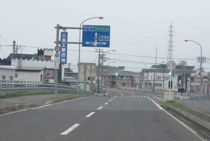 とん田通り、無加川橋を渡り錦町の南岸通り交差点