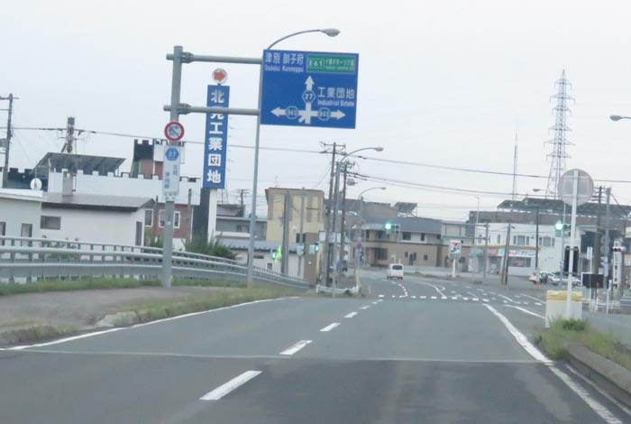 とん田通り、無加川橋を渡り錦町の南岸通り交差点