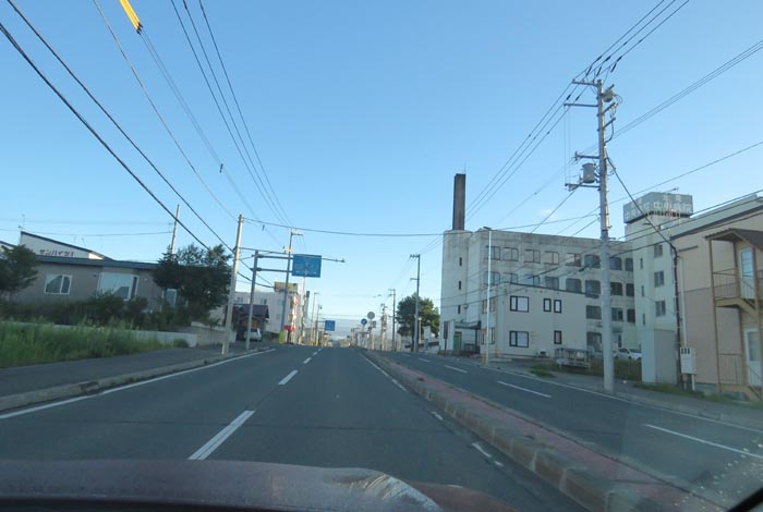 末広町の南岸通り、西4号線バス停前から野付牛自動車学校方向