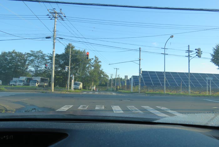 南岸通り、野付牛自動車学校前、前方はとん田通りの交差点
