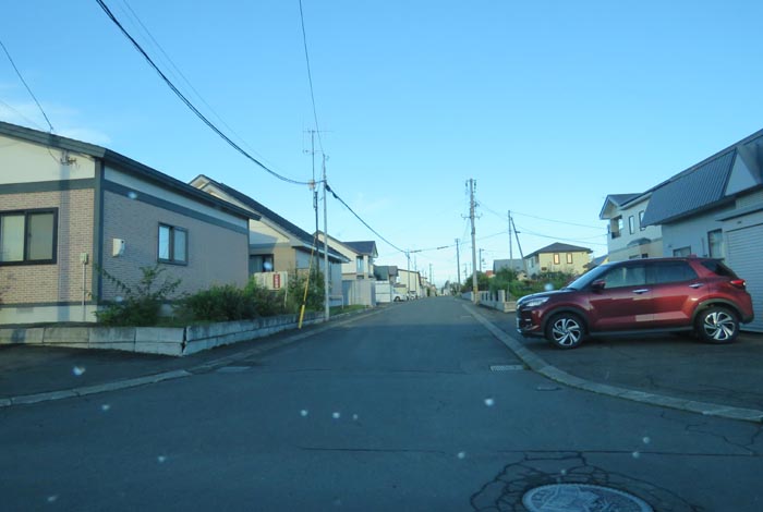 産岸通りから左折して西5号線のバス停前から北光通り交差点方向