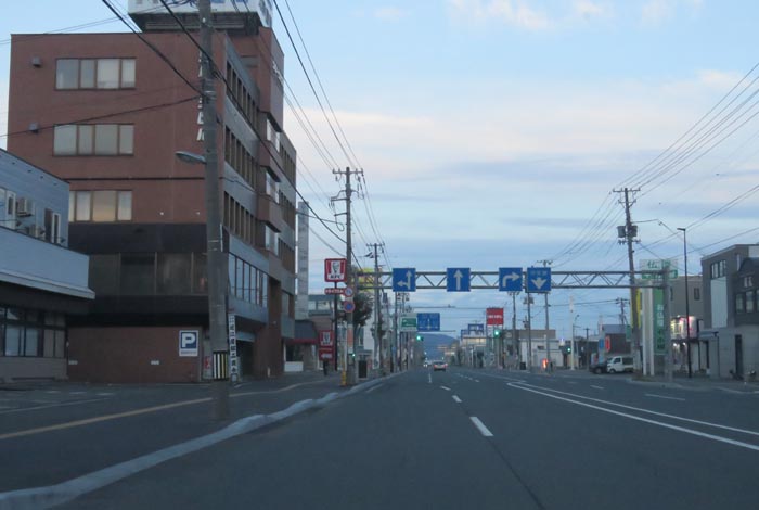 午前4時40分、4条通りの国道39号交差点を右折で緑園通り方向