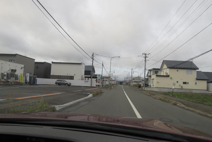 産岸通りから左折して西5号線のバス停前から北光通り交差点方向