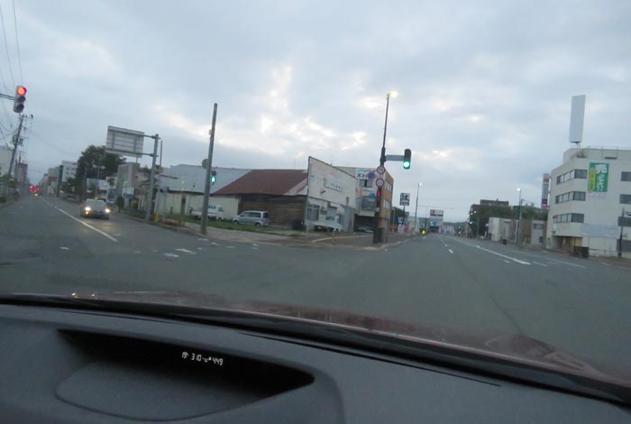 南岸通り、野付牛自動車学校前、前方はとん田通りの交差点