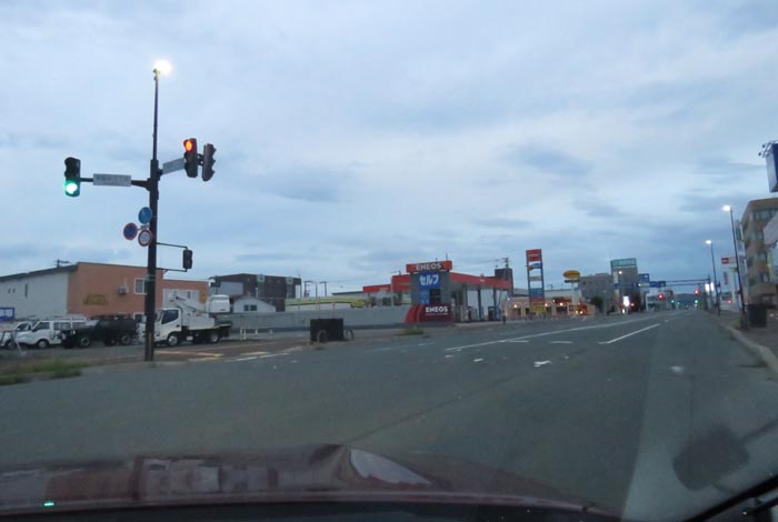 午前4時50分、4条通りの国道39号交差点を右折で緑園通り方向