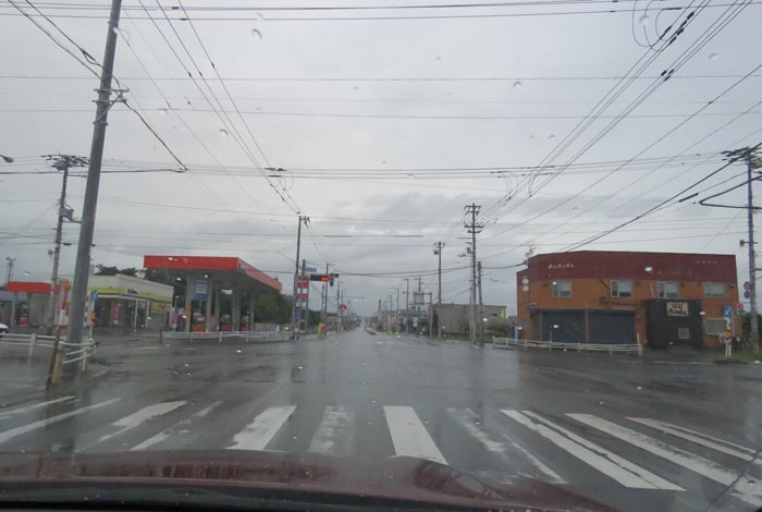 南岸通り、野付牛自動車学校前、前方はとん田通りの交差点