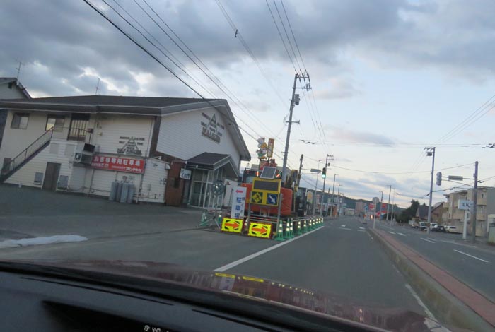 とん田通り、無加川橋を渡り錦町の南岸通り交差点