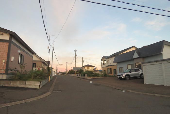 産岸通りから左折して西5号線のバス停前から北光通り交差点方向