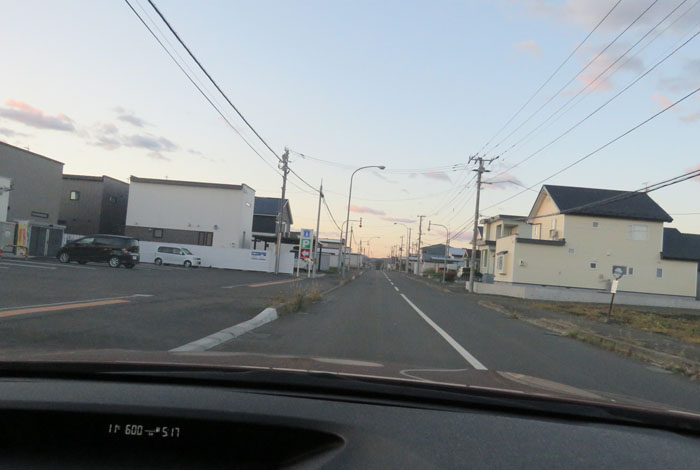 産岸通りから左折して西5号線のバス停前から北光通り交差点方向