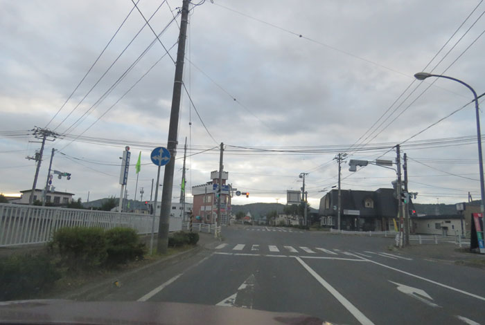 南岸通り、野付牛自動車学校前、前方はとん田通りの交差点