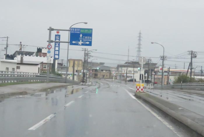 とん田通り、無加川橋を渡り錦町の南岸通り交差点