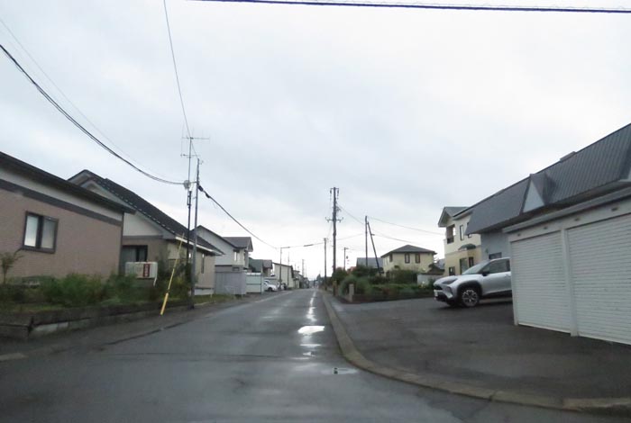 産岸通りから左折して西5号線のバス停前から北光通り交差点方向