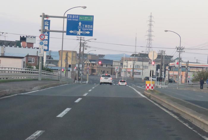とん田通り、無加川橋を渡り錦町の南岸通り交差点