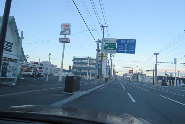 午前5時40分、北4条通りの国道39号交差点を右折で緑園通り方向