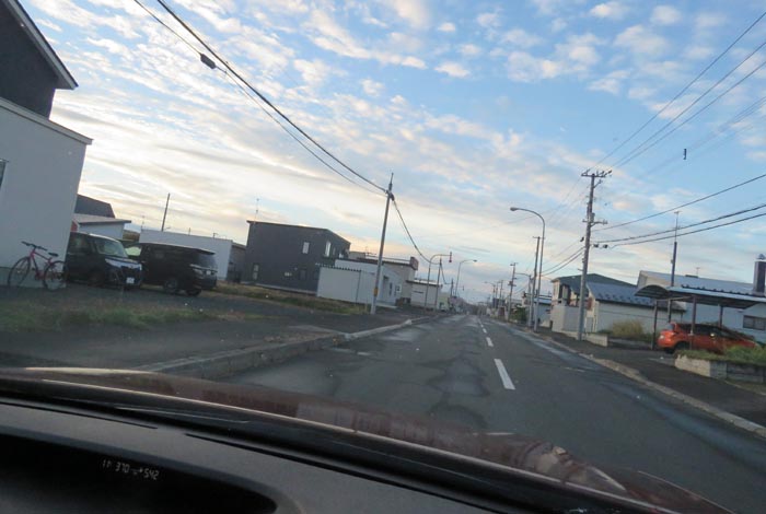 産岸通りから左折して西5号線のバス停前から北光通り交差点方向