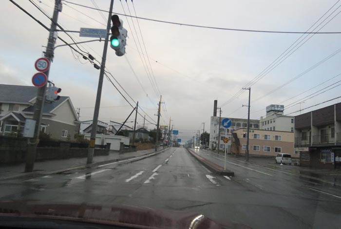 南岸通り、野付牛自動車学校前、前方はとん田通りの交差点