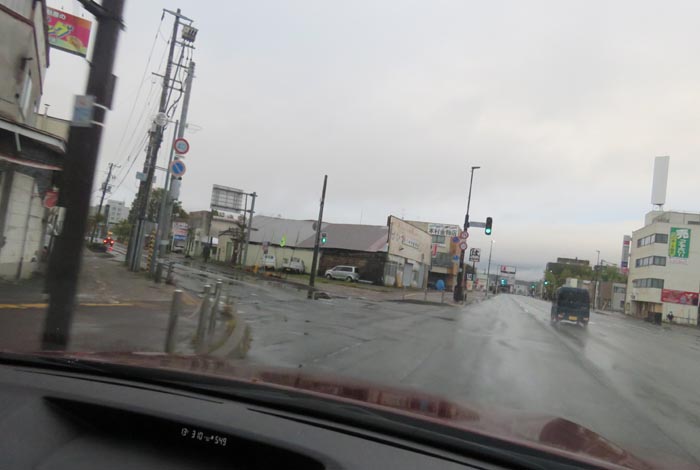 末広町の南岸通り、西4号線バス停前から野付牛自動車学校方向