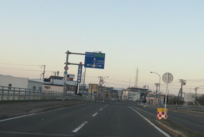 とん田通り、無加川橋を渡り錦町の南岸通り交差点