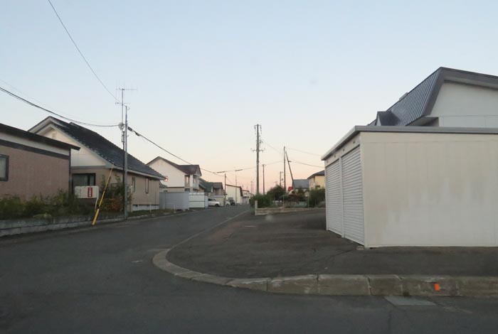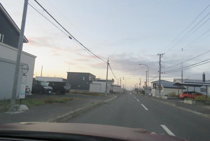 産岸通りから左折して西5号線のバス停前から北光通り交差点方向