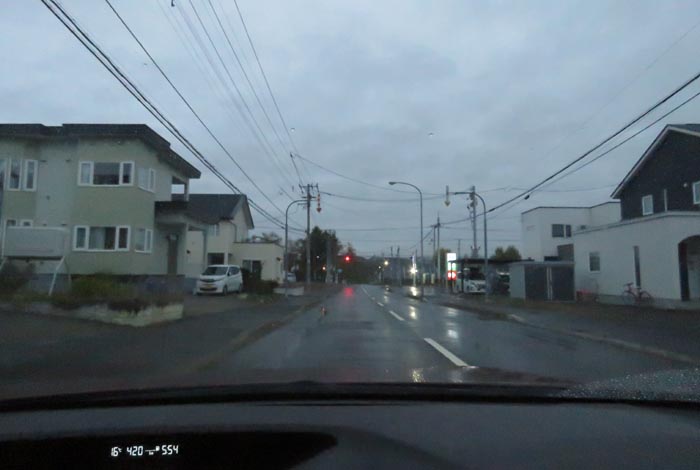 南岸通り、野付牛自動車学校前、前方はとん田通りの交差点
