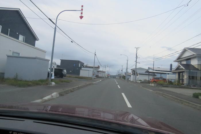 産岸通りから左折して西5号線のバス停前から北光通り交差点方向