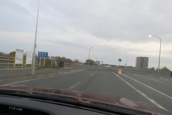 左折すると無加川橋