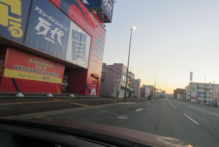 末広町の南岸通り、西4号線バス停前から野付牛自動車学校方向