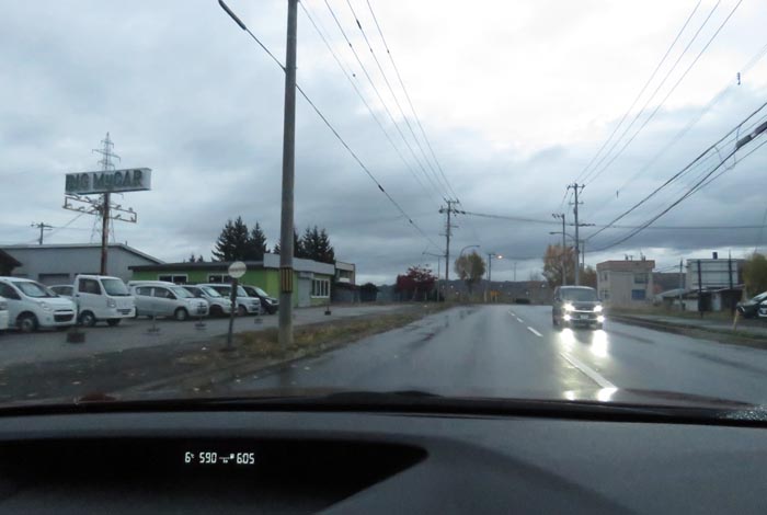 末広町の南岸通り、西4号線バス停前から野付牛自動車学校方向