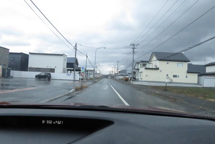 産岸通りから左折して西5号線のバス停前から北光通り交差点方向