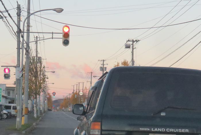 午前6時10分、南岸通り、野付牛自動車学校前から無加川町方向