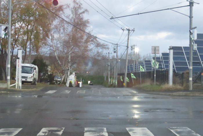 南岸通り、とん田通りの交差点から右は北光神社方向
