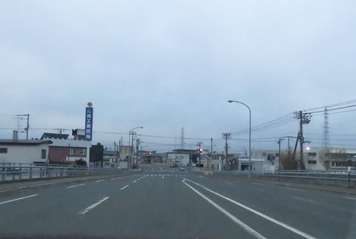 とん田通り、無加川橋を渡り錦町の南岸通り交差点