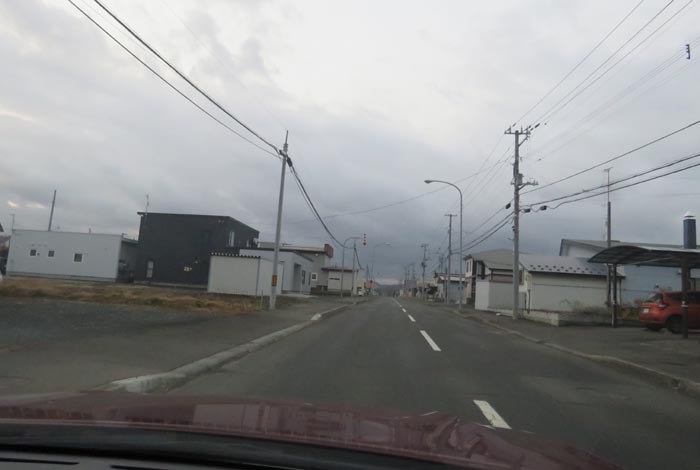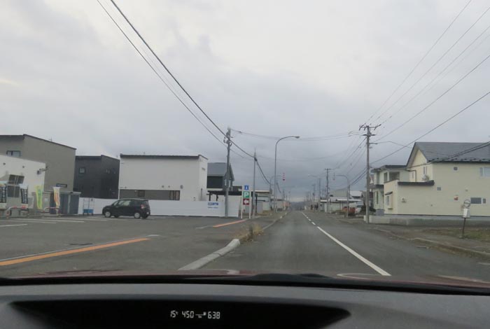 産岸通りから左折して西5号線のバス停前から北光通り交差点方向