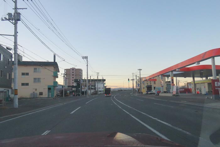 午前6時30分、西3号線とん田通りの北見中央病院横から無加川橋方向