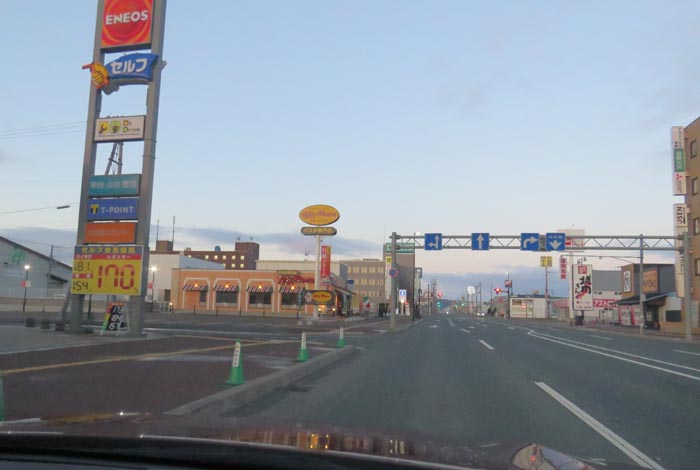 午前6時30分、北4条通りの国道39号交差点を右折で緑園通り方向