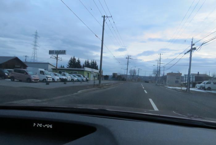末広町の南岸通り、西4号線バス停前から野付牛自動車学校方向